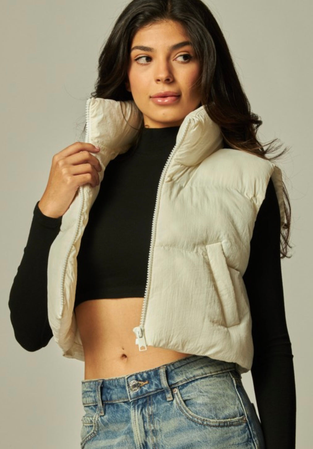 This isn’t just a puffer vest; it’s a modern layering essential. Designed in a clean ivory tone with a fitted,... Read more